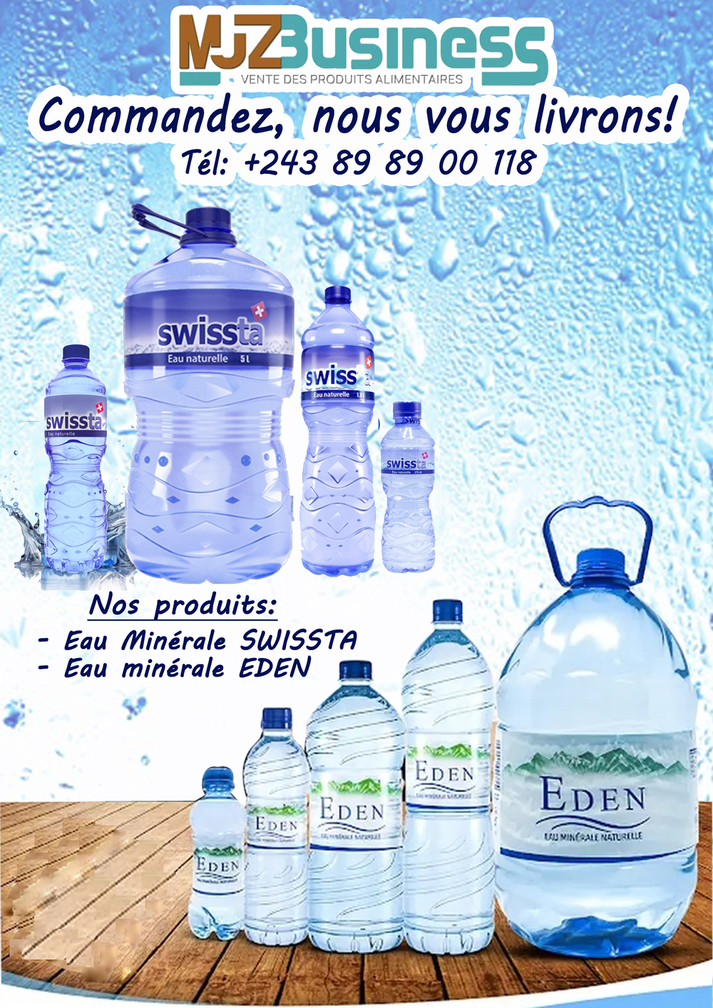 Nous mettons un point d'honneur à distribuer les meilleures marques d'eau minérale disponibles sur le marché de Kinshasa :